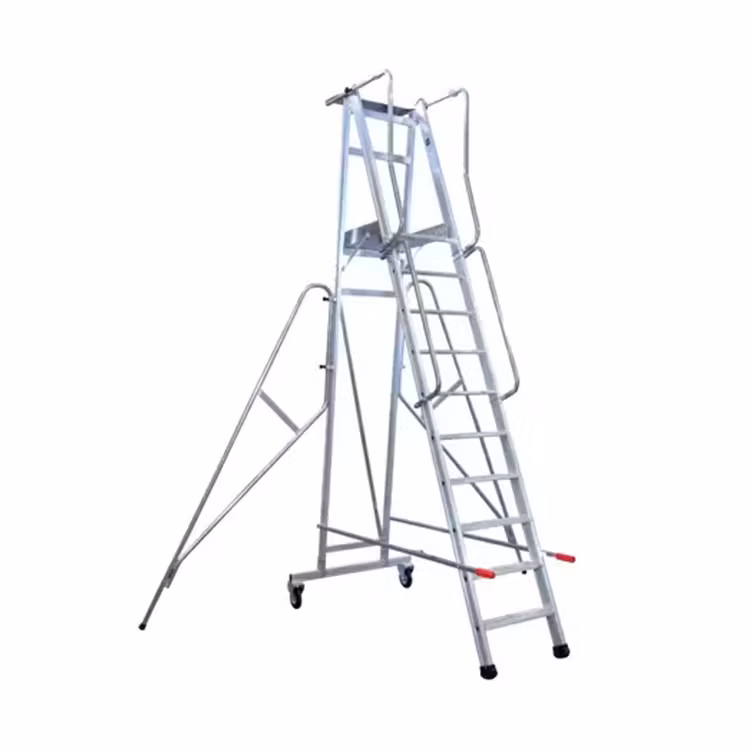 Med kraftiga hjul och greppvänliga handtag flyttas plattformen enkelt mellan olika platser. De infällbara stödbenen underlättar vid förflyttning på begränsat utrymme.